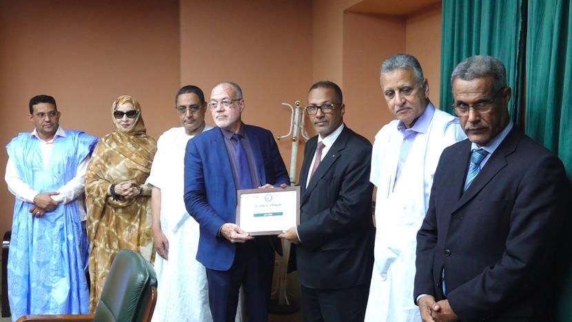 كرم رئيس الاتحاد الوطني لأرباب العمل الموريتانيين بمقر الاتحاد تكريمات لمختلف اللجان التي كانت مشرفة على تنظيم الجمعية العمومية الثامنة والأربعين للاتحاد الإفريقي لشركات التأمين (FANAF) للأول مرة بالعاصمة نواكشوط .
