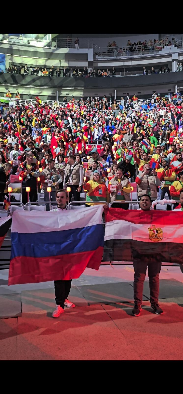 وقال : "أنتم جيل الشباب. أنتم تحلمون بما يمكن وينبغي أن يكون عليه عالمنا من أمن وعدل. والأمر متروك لكم لتقوموا بإنشائه.. ونحن منفتحون على الحوار.. وأخوّة الشعوب ستظل دائما الداعم والميزة والقوة الأساسية لروسيا"