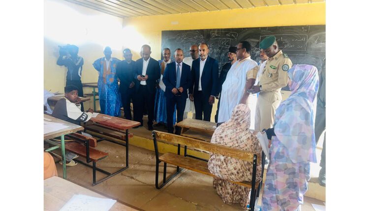 أشرف والي تيرس الزمور، السيد الطيب ولد محمد محمود، رفقة مدير مدرسة التعليم الفني والتكوين المهني، السيد علوات ولد حم الأمين، صباح اليوم الأربعاء بالثانوية رقم1 بمدينة ازويرات على انطلاق مسابقة شهادة السنة الأولى من الكفاءة المهنية على مستوى الولاية بمشاركة 483 تلميذا.