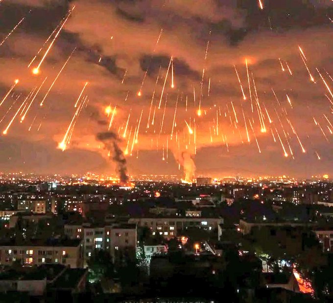 متعوا عيونكم بهذه المناظر الجميلة والمشاهد التي شابت رؤوسنا من اجل رؤيتها وهرمنا من اجل هذه اللحظة انظروا الى الصواريخ الايرانية المباركة تحول ليل هذا الكيان المجرم قاتل الاطفال المتلذذ قادته بسفك دماء الاطفال والشيوخ والنساء،ابطال المذابح الوحشية العنصرية السادية التي تفرج عليها العالم اجمع والتي اكدت واظهرت بكل وضوح مدى وحشية جنود العدو الصهيوني..