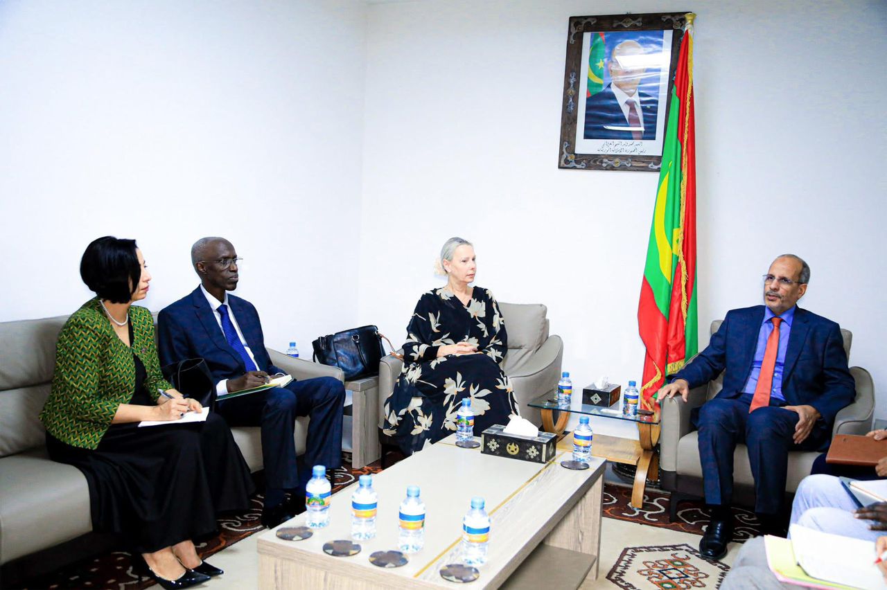 بحث وزير التكوين المهني والصناعة التقليدية والحرف، محمد ماء العينين ولد أييه، مع المديرة العامة المساعدة لمكتب البنك الأفريقي للتنمية في شمال إفريقيا، مالين بلومبرغ، والممثل المقيم للبنك، هركول ياموريميا، سبل تعزيز التعاون بين موريتانيا والبنك، خاصة في مجالي التكوين المهني والصناعة التقليدية والحرف.