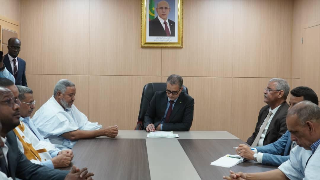 عقد معالي وزير الزراعة السيد أمم ولد بيباته مساء اليوم الاثنين اجتماعا بمباني الوزارة في نواكشوط مع رئيس اتحاد ارباب العمل الموريتانيين السيد زين العابدين ولد الشيخ احمد وعدد من المنتجين الزراعيين ، اعضاء التجمع ذي النفع الاقتصادي ” GIE” في منطقة آفطوط الساحلي .