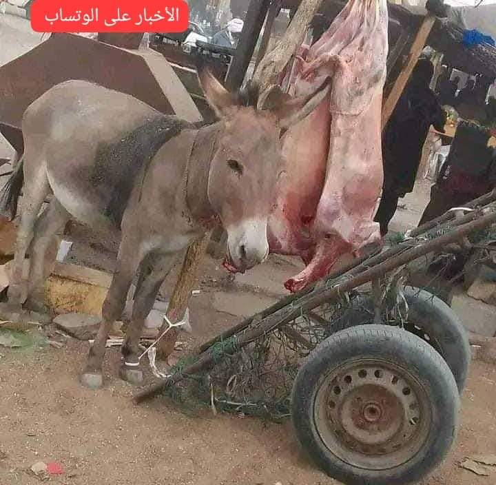 هذه لحوم غير مامونة صحيا او غذائيا تباع في الشارع جنبا لجنب السموم والاتربة والحراثيم...انظروا الى الحمير ومدى قربها من هذه. الشياه التي تم ذبحها وسلخها ووضعها في هذه الظروف غير الصحية ..