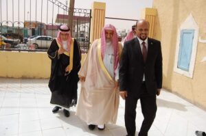 زار إمام الحرم المكي الشيخ صالح بن عبد الله بن حميد رفقة الأمين العام لوزارة الشؤون الإسلامية والتعليم الأصلي السيد بيت الله ولد أحمد لسود محظرة ومكتبة جامع بوحديدة المعروف (بالمسجد الاحمر).
