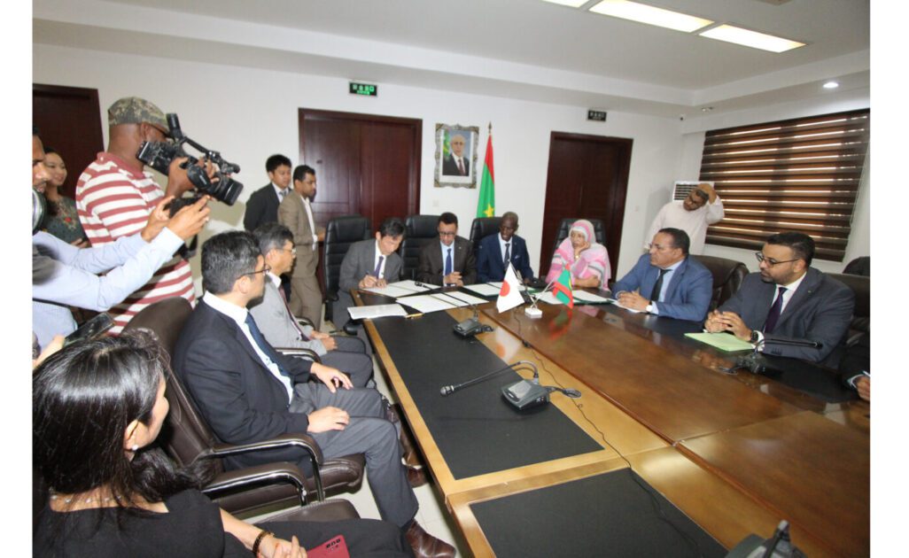 وقع معالي وزير الاقتصاد والتنمية المستدامة، السيد عبد السلام ولد محمد صالح، مساء اليوم الخميس في نواكشوط، مع السفير الياباني المعتمد في موريتانيا، سعادة السيد أوتشيدا تاتسوكوني، على اتفاقيتين تقدم بموجبهما اليابان لبلادنا منحتين تبلغ قيمة أولاهما والمتعلقة بدعم الأمن الغذائي 142 مليون أوقية وهو ما يناهز 550 مليون ين ياباني، في حين تبلغ قيمة المنحة الثانية والمخصصة لتمويل مشروع تحديث سفينة بحوث المحيطات 13 مليون أوقية وهو ما يناهز 52 مليون ين ياباني