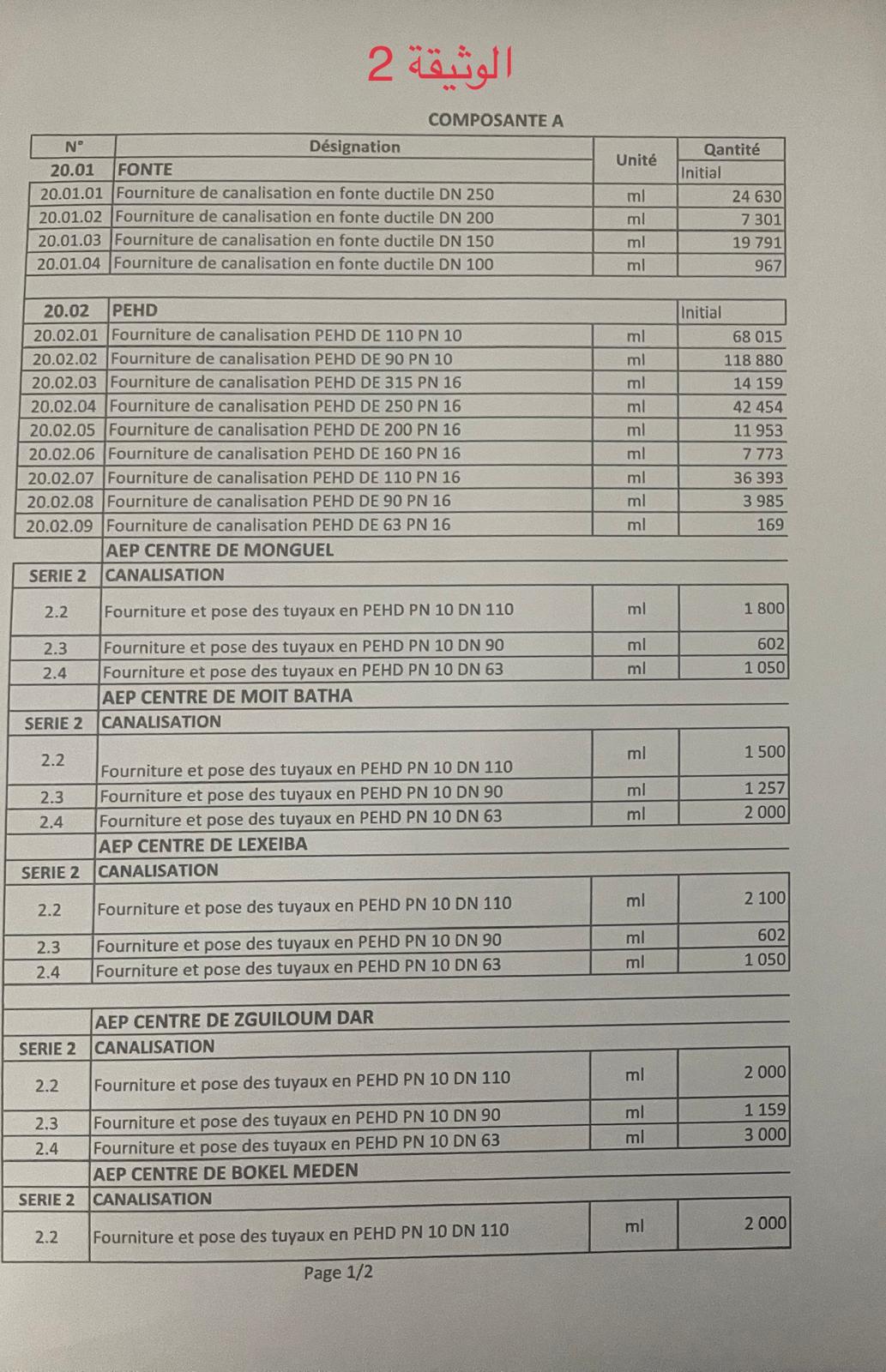 و تبلغ قيمتها الاجمالية: 416 442 662 بهدف انجاز 25 برجا وخزانين اثنين بين المكونتين (أ) و(ب)