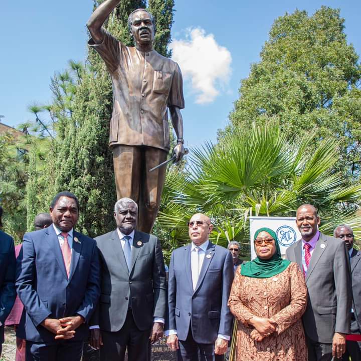 أشرف فخامة رئيس الجمهورية، رئيس الاتحاد الافريقي، السيد محمد ولد الشيخ الغزواني، صحبة رئيسة جمهورية تنزانيا الاتحادية السيدة سامية صولحو حسن، ورئيس الوزراء الأثيوبي السيد آبى أحمد، ورؤساء دول وحكومات مجموعة تنمية الجنوب الأفريقي SADC، ورئيس مفوضية الاتحاد الإفريقي السيد موسى فقيه محمد، صباح اليوم بمقر الاتحاد الإفريقي في أديس أبابا، على حفل إزاحة الستار عن تمثال النصب التذكاري للرئيس التنزاني الراحل جوليوس انيريرى، الذي