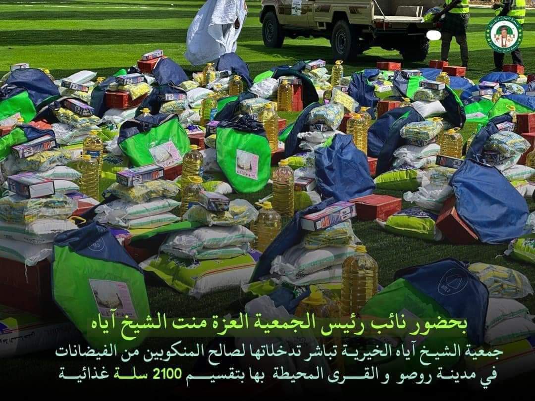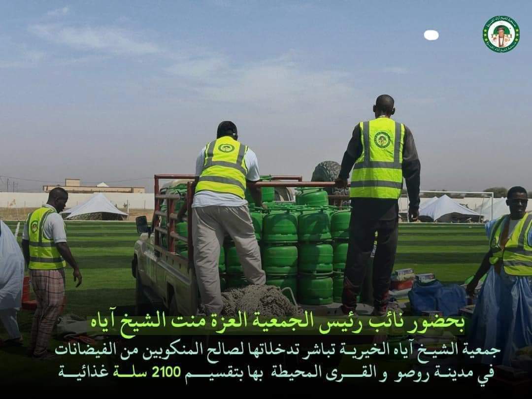 جمعية الشيـخ آياه الخيريـة تباشر تدخلاتها لصالح المنكوبين من الفيضانات في مدينـة روصو و القـــرى المحيطة بها بتقسيـــم 2100 سلــة غذائيــة