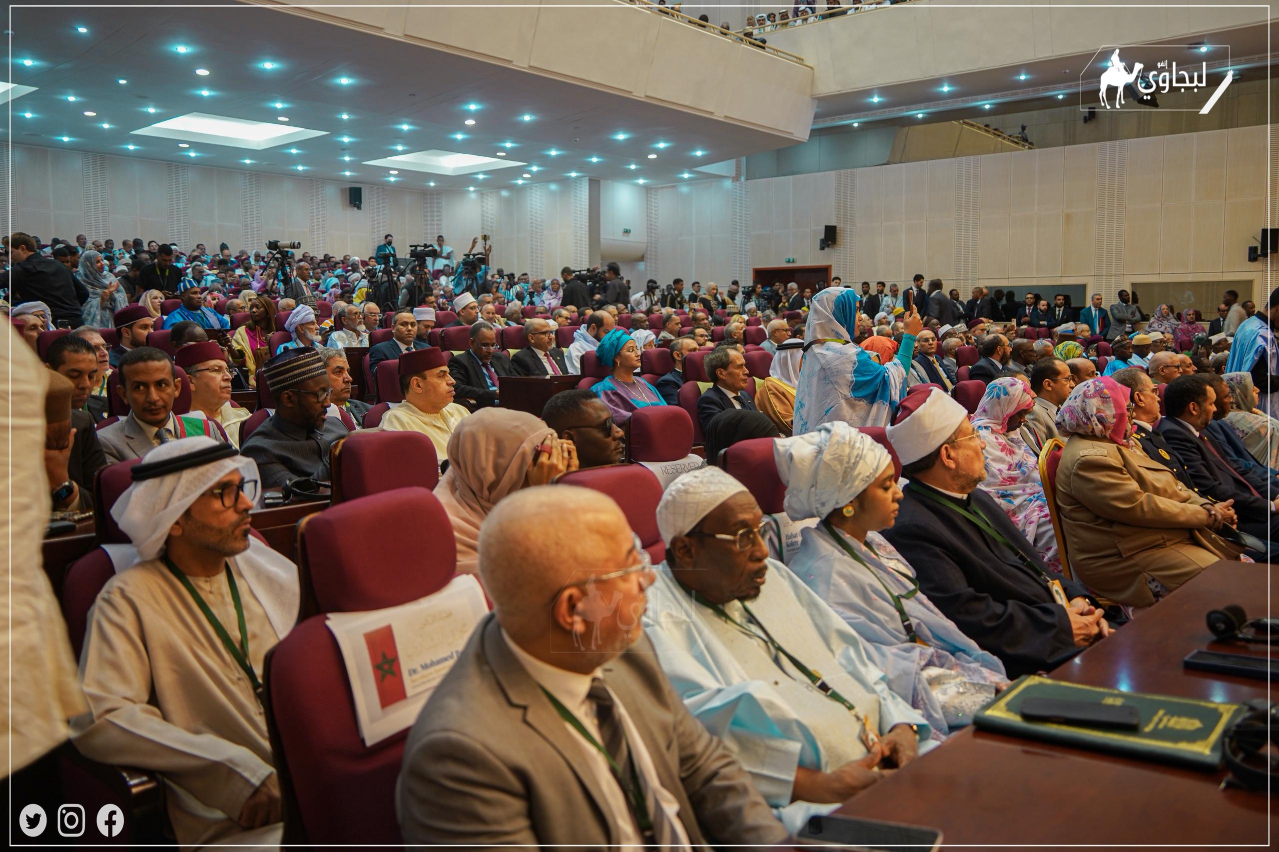 ليلقي بعد ذلك وزير الاوقاف المغربي احمد توفيق كلمة قيمة ثمن فيها نهج الشيخ عبد الله ومقارباته في هذا الموضوع ومنوها بمبادرات المغرب من اجل ضمان السلام ومكافحة التطرف والغلو ليتم اختتام فعاليات الافتاح بكلمة معالي الوزير الاول المخطار اجاي التي اعلن فيها ترحيب الجمهورية الإسلامية الموريتانية بضيوف المؤتمر وخص الوزيرين المغربي ووزير اللامركزية اتشادي الممثل لرئيس الجمورية المشير محمد ادريس دبي اتنو قبل ان يتم تسليهم جائزة السلم الاهلي الممنوحة للرئيس ادريس ديبي اتنو ...